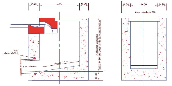 - le puits, également appelé cunette, qui est soit à passage direct, soit à décantation ;