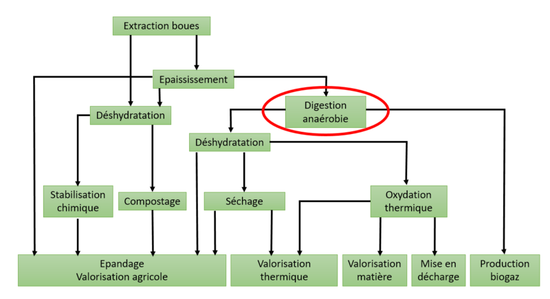 Nota 2 : Pendant longtemps, la raison principale pour laquelle les exploitants de station utilisait la digestion anaérobie était la réduction de la quantité de matière sèche des boues et non la production de biogaz (Reverdy et al., 2011, cité par Falipou et al., 2020). Cet état de fait est probablement en train de changer.