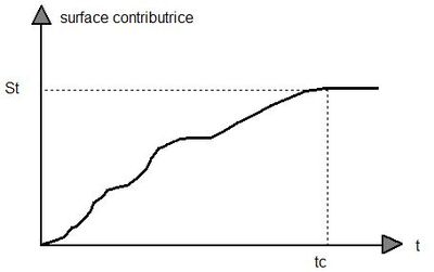 Il est possible de représenter l'expression (2) par un graphe aire/temps qui permet de calculer l'évolution de la surface théorique contribuant au ruissellement en fonction du temps écoulé depuis le début de la pluie.