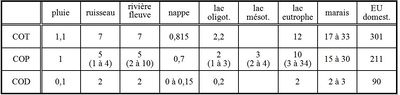 La connaissance des concentrations en carbone organique dans l’eau donne une image assez précise de la quantité de matière organique présente. Le tableau suivant indique des ordres de grandeur des concentrations en fonction des milieux.